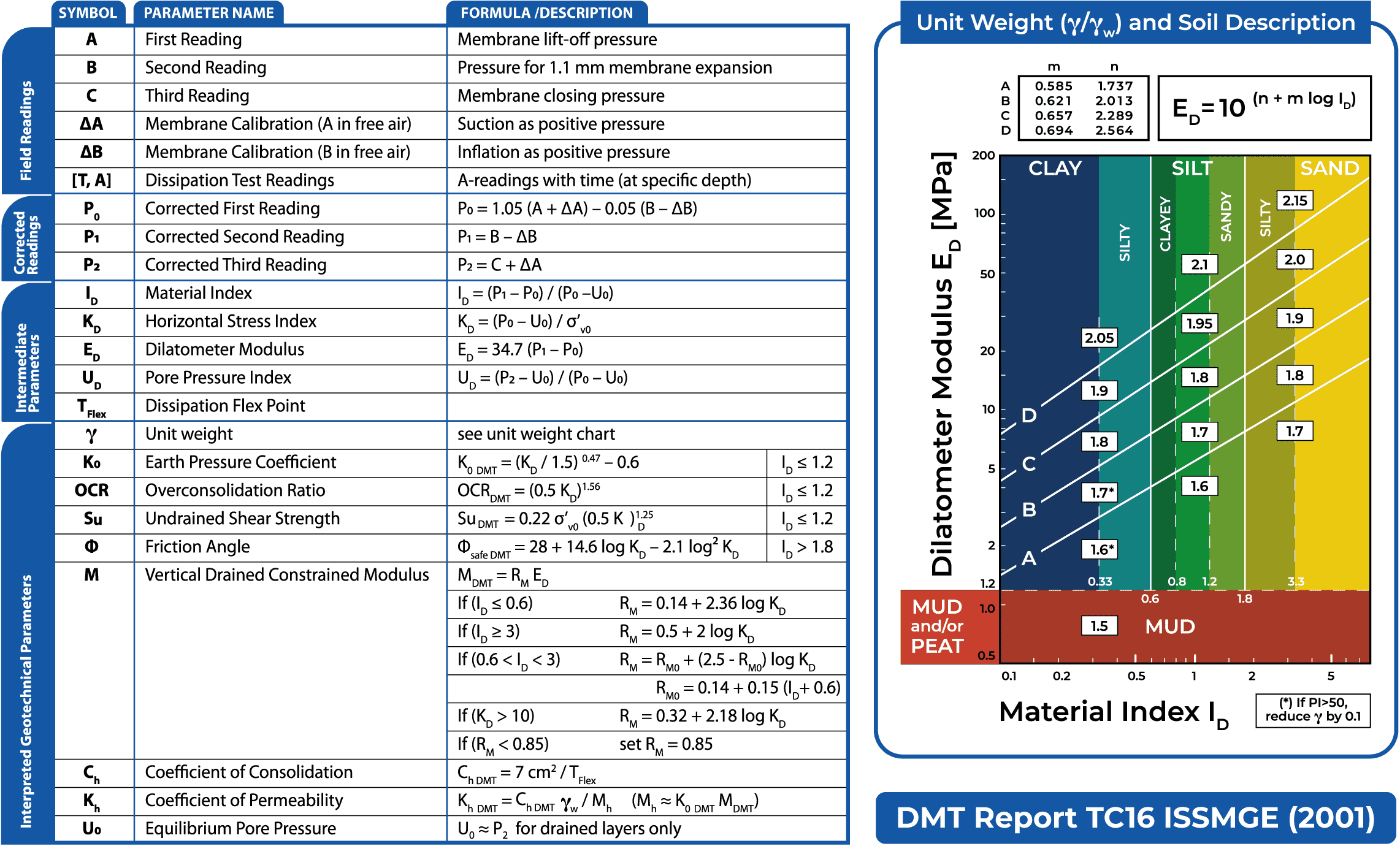 Flat Dilatometer test consists in advancing a blade into the ground with any common field machine. At each test depth, a circular steel membrane located on one side of the blade is expanded horizontally against the soil. The pressure readings are recorded at specific moments during the membrane expansion. The blade is then advanced to the next test depth, typically with 0.20 m depth interval.